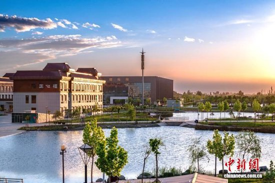 兵团兴新职业技术学院校园一景 。参赛团队带来的区域“基于多元数据融合的风力发电机故障检测系统”,