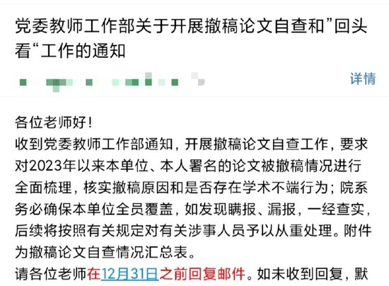 有高校学生收到的论文撤稿自查通知 受访者供图